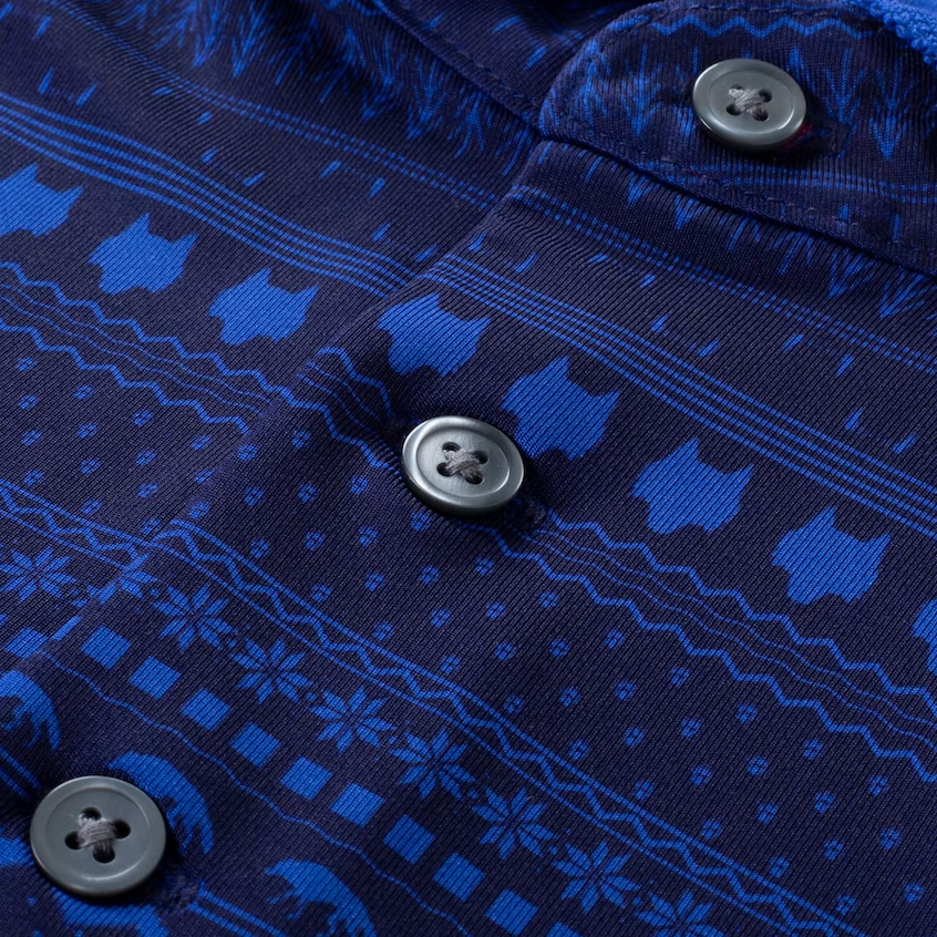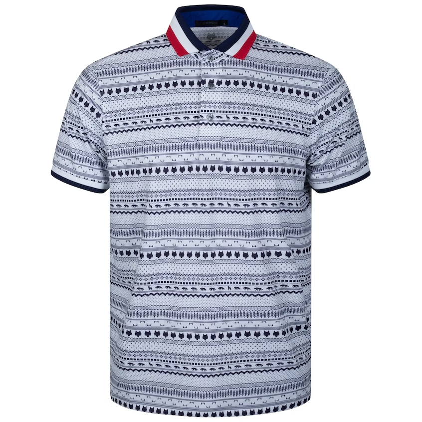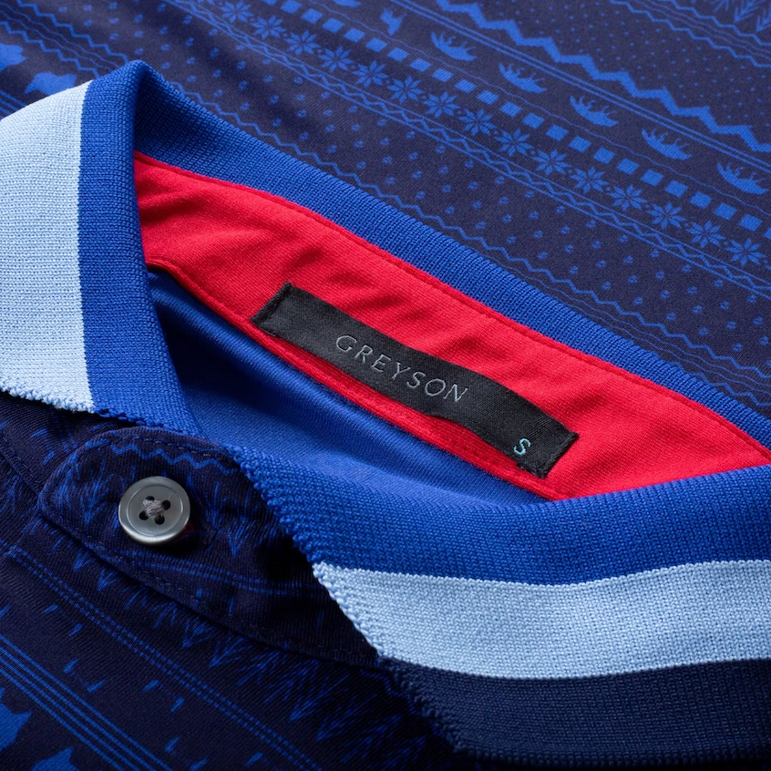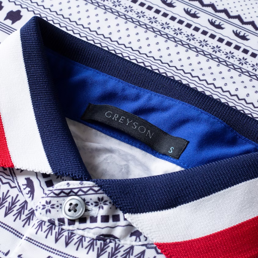 Spirit Chaser Polo 衫是 Greyson 在2022年推出的全新款式。 Spirit Chaser 印花高爾夫 Polo 衫採用滌綸混紡面料製成,旨在提供極致的舒適性和性能。 這款 Polo 衫具有抗菌和吸濕排汗功能,全身飾有標誌性的狼圖案。 飾有優雅的多色衣領和三鈕扣衣襟。 提供兩種應季配色。