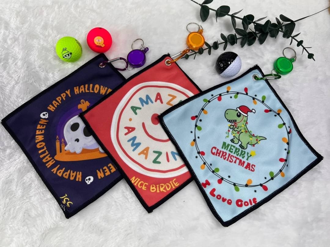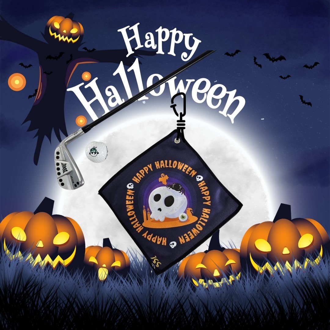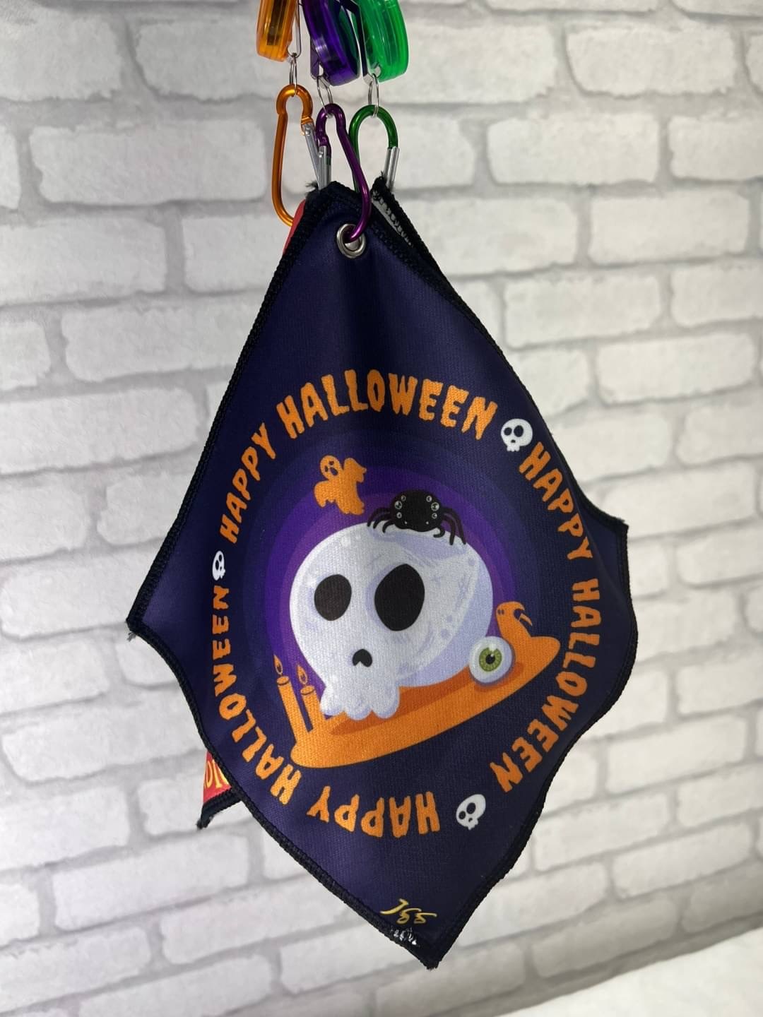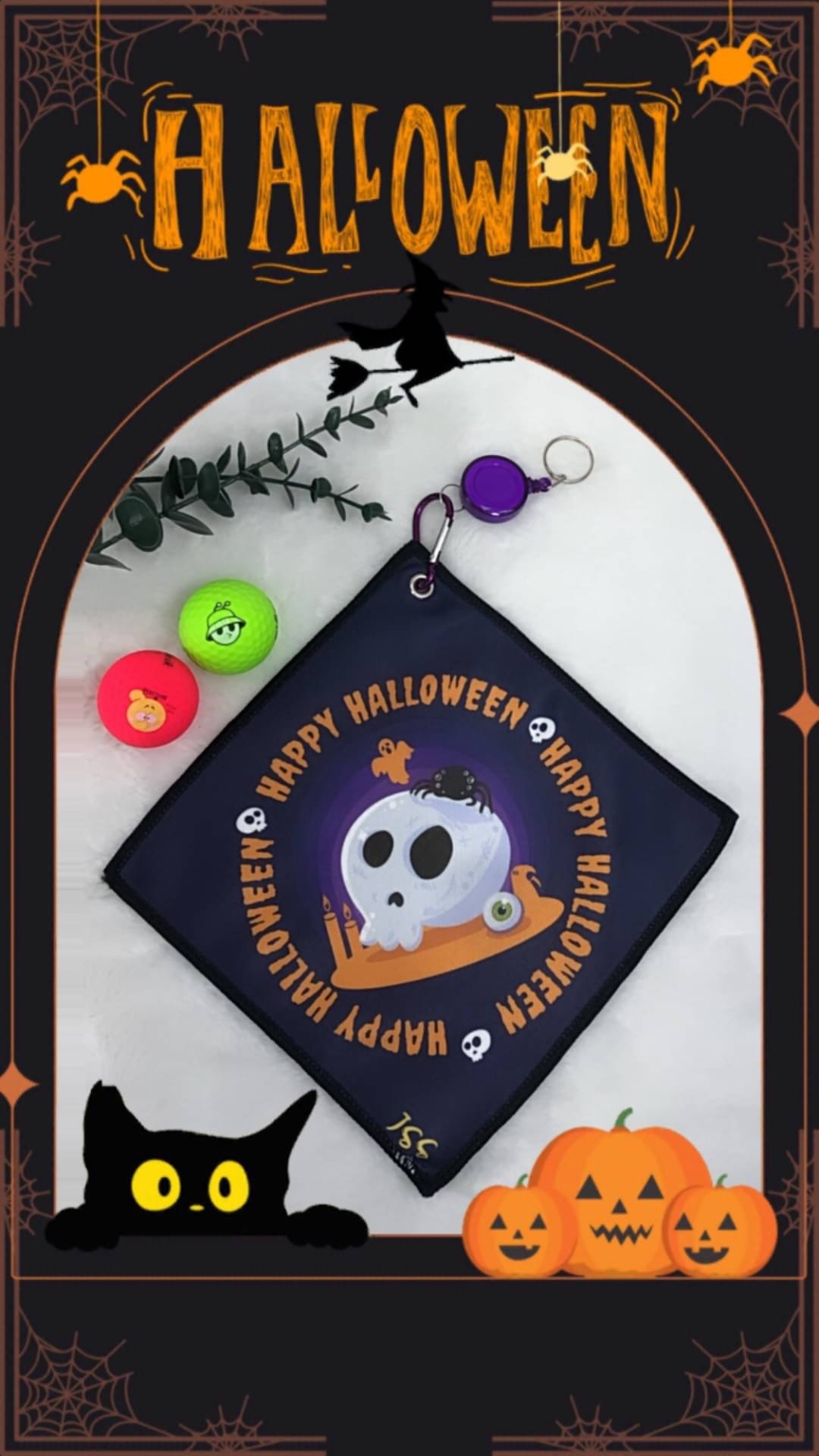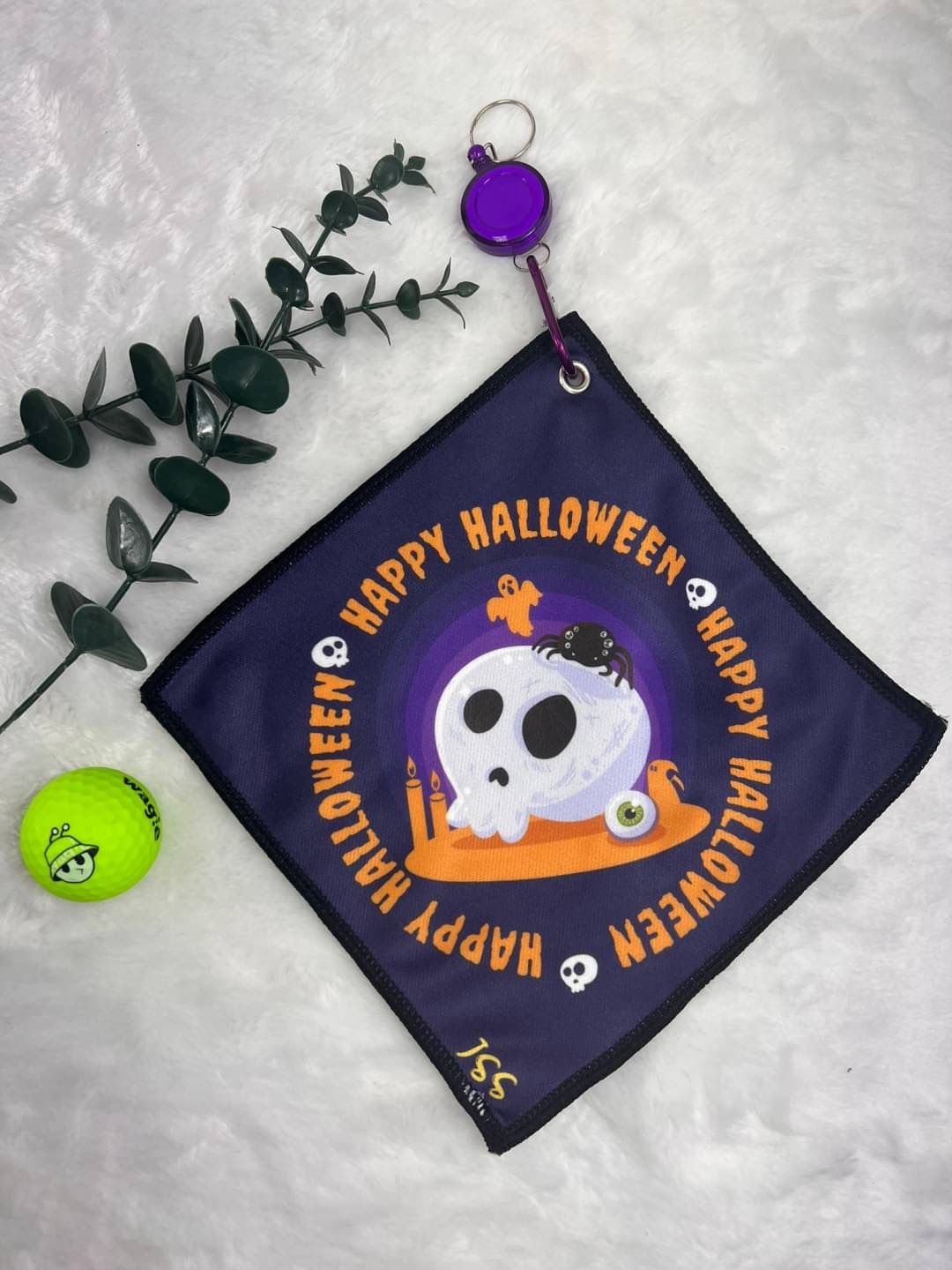 -限量版可愛萬聖節印花圖騰高爾夫球擦球巾,掛鉤方便可掛在球袋、腰部和車上;走到哪就可以隨意擦球,材質超級吸水布料。