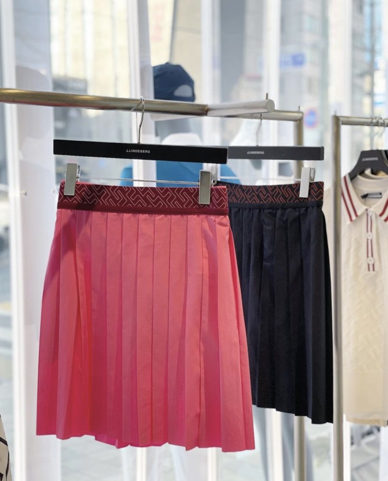 JLindeberg春夏裝推出繽紛Odia百褶裙,這是一條迷人的小褶裙,設計師搭配對比鮮明的現代JL Bridge字母組合腰帶,腰圍更顯得精緻及時尚。