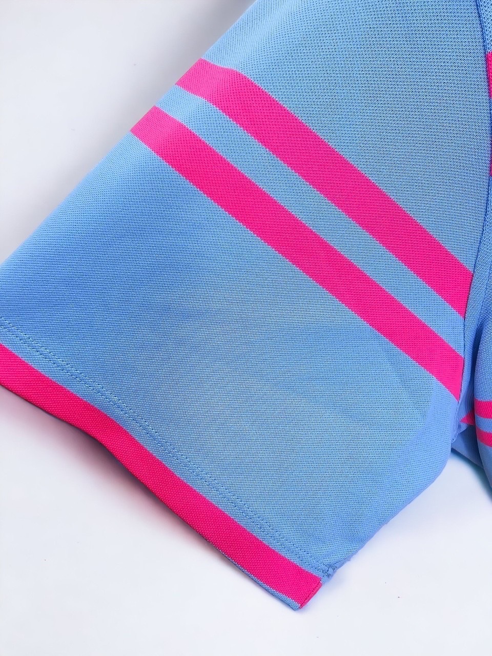 本款設計採用極為輕盈透氣的高科技珠地面料製成;色彩採用今年夏天流行多巴胺鮮豔色系來呈現高球時尚和流行;材質涼感、透氣、彈性可在炎熱天氣提供最大的舒適度和競爭優勢。