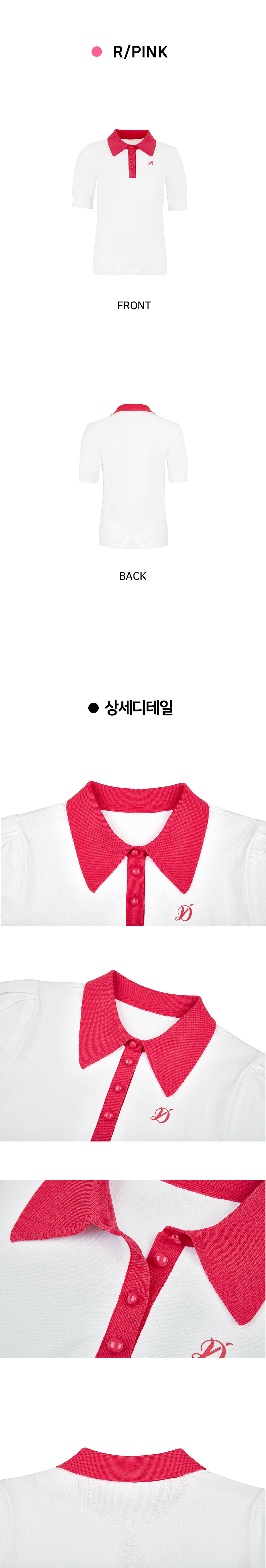 這是一款以雷角混紡紗線製成的寬領拼色點毛衣,外觀自然,觸感彈性極佳,夏日清涼觸感。脫離傳統高爾夫球裝造型的款式,有色點,可愛情調的寬領,樸素的泡泡袖,讓你打造出俐落又充滿女人味的穿搭造型。 簡單的色彩組合很容易搭配,順應身體線條的輪廓整齊地脫穎而出。這是一款適合多種場合的單品,無論是野外造型還是日常造型,都可以在夏季穿著。