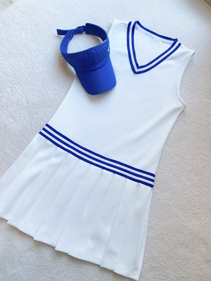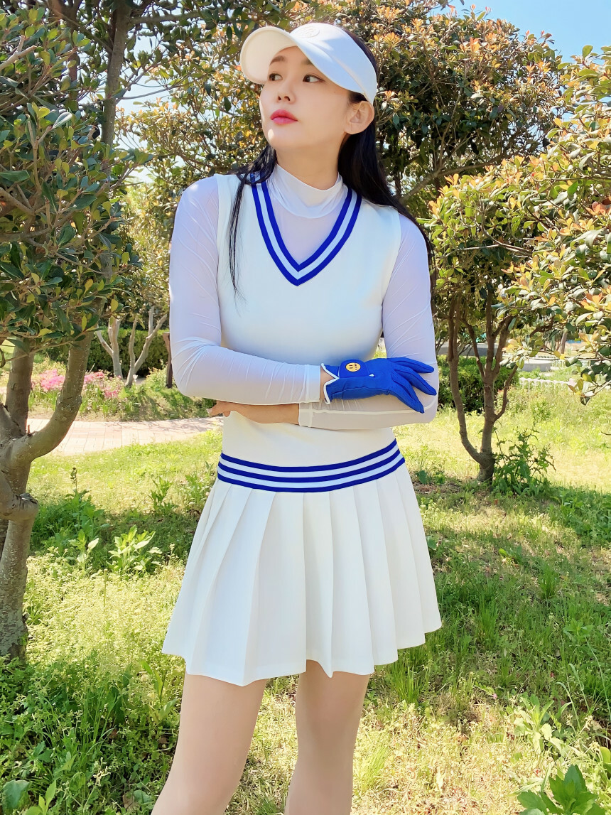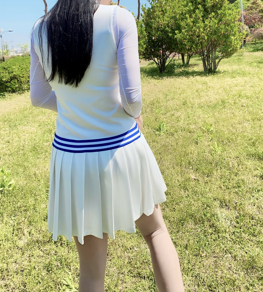 -夏天絕對少不了「純白色」浪漫&優雅的顏色,合身款彈性剪裁非常俐落,搭配腰圍三線條紋設計,視覺感覺得腰圍纖細,下擺百摺裙優雅展現。
