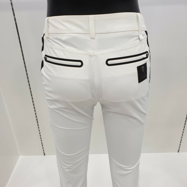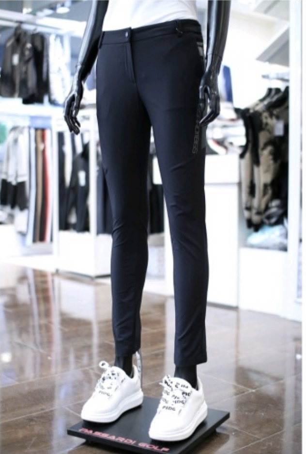 女 韓國Passardi 高球品牌正品/夏款 修身斜點線條 skull印花彈性直筒長褲/高爾夫球褲