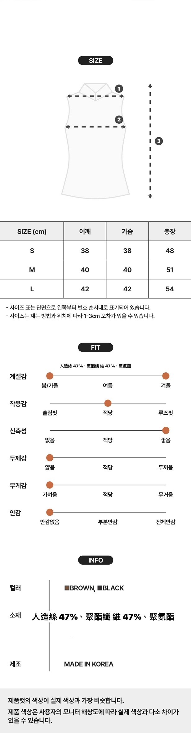 3.春秋款背心,材質人造絲 47%、聚酯纖 維 47%、聚氨酯 6% ;建議乾洗。
