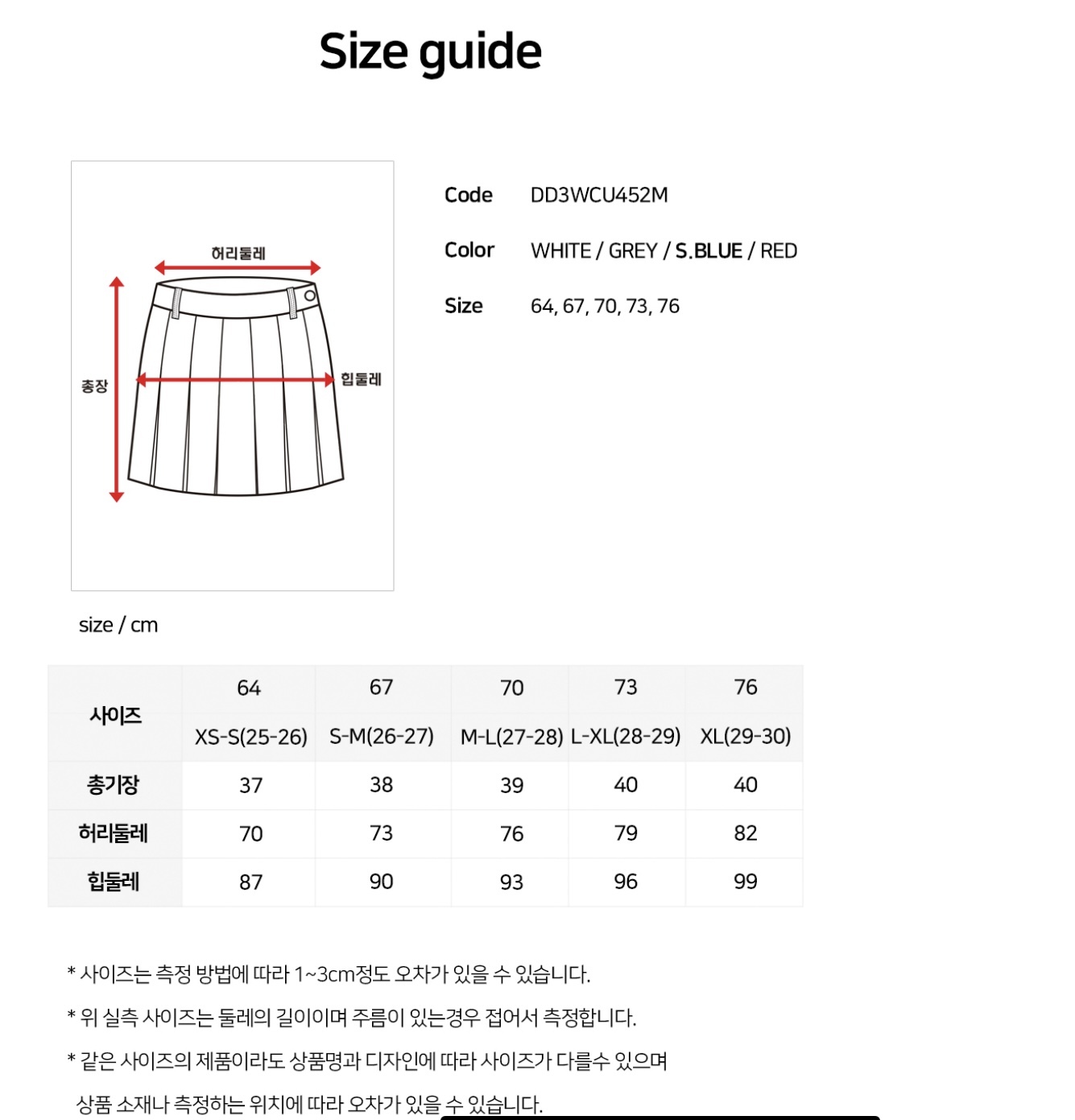 褲子&裙子尺寸對照:韓版尺寸61/24腰,64/25腰,67/26腰,70/27腰,73/28腰,76/29腰,79/30腰