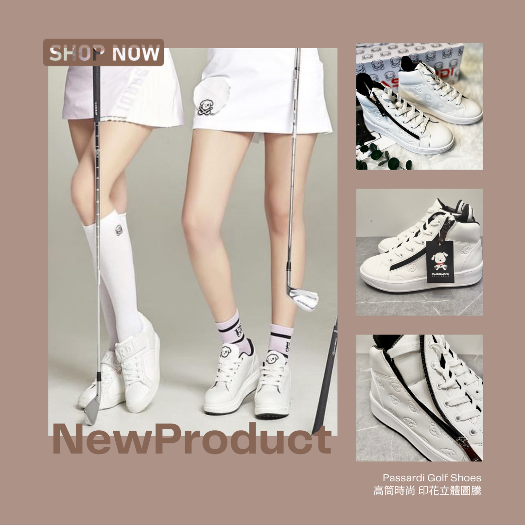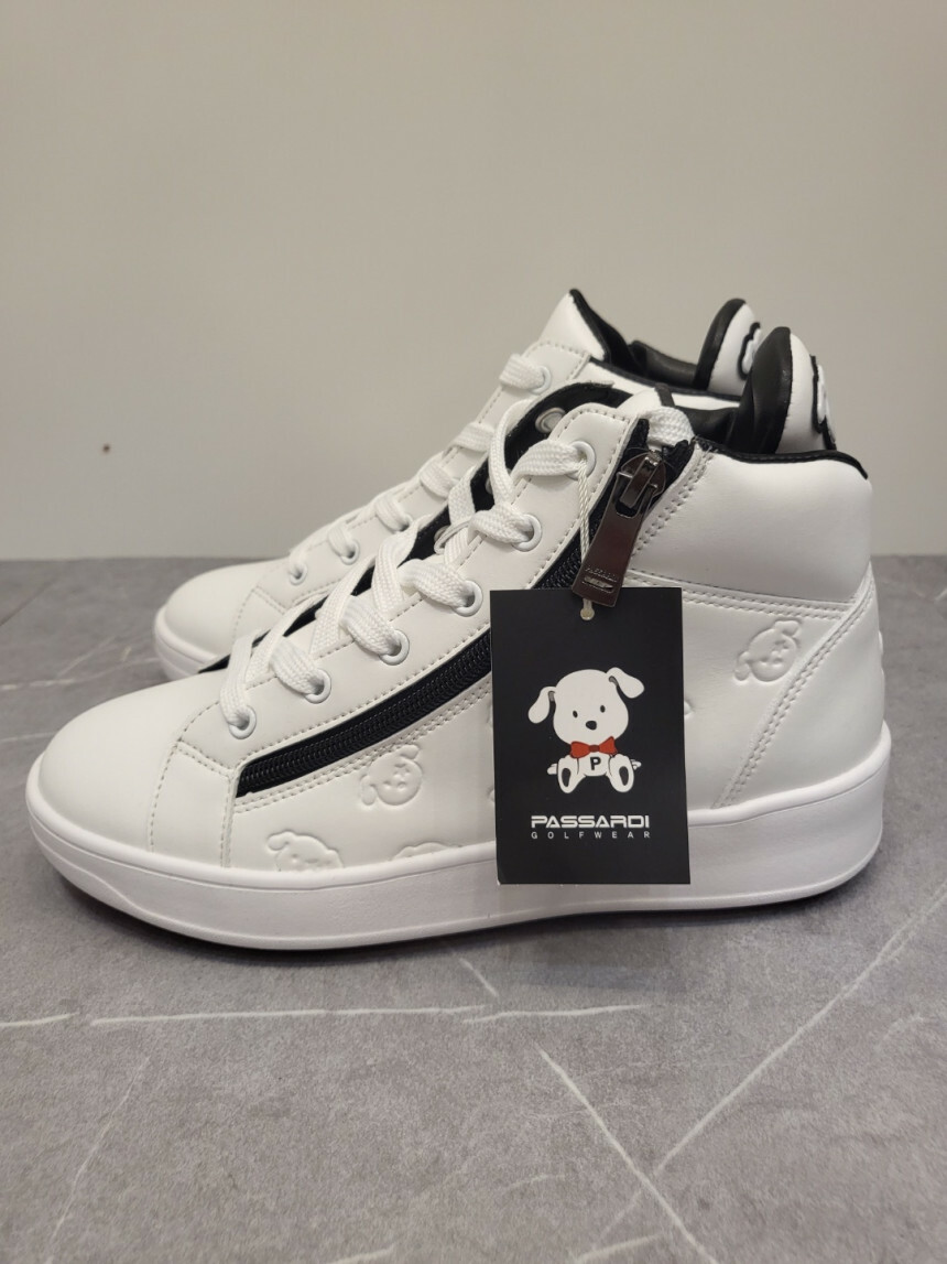 女【現貨】PASSARDI正品/高爾夫球鞋(無釘) 時尚高筒設計 可愛狗紋印花皮革/#MWA112303