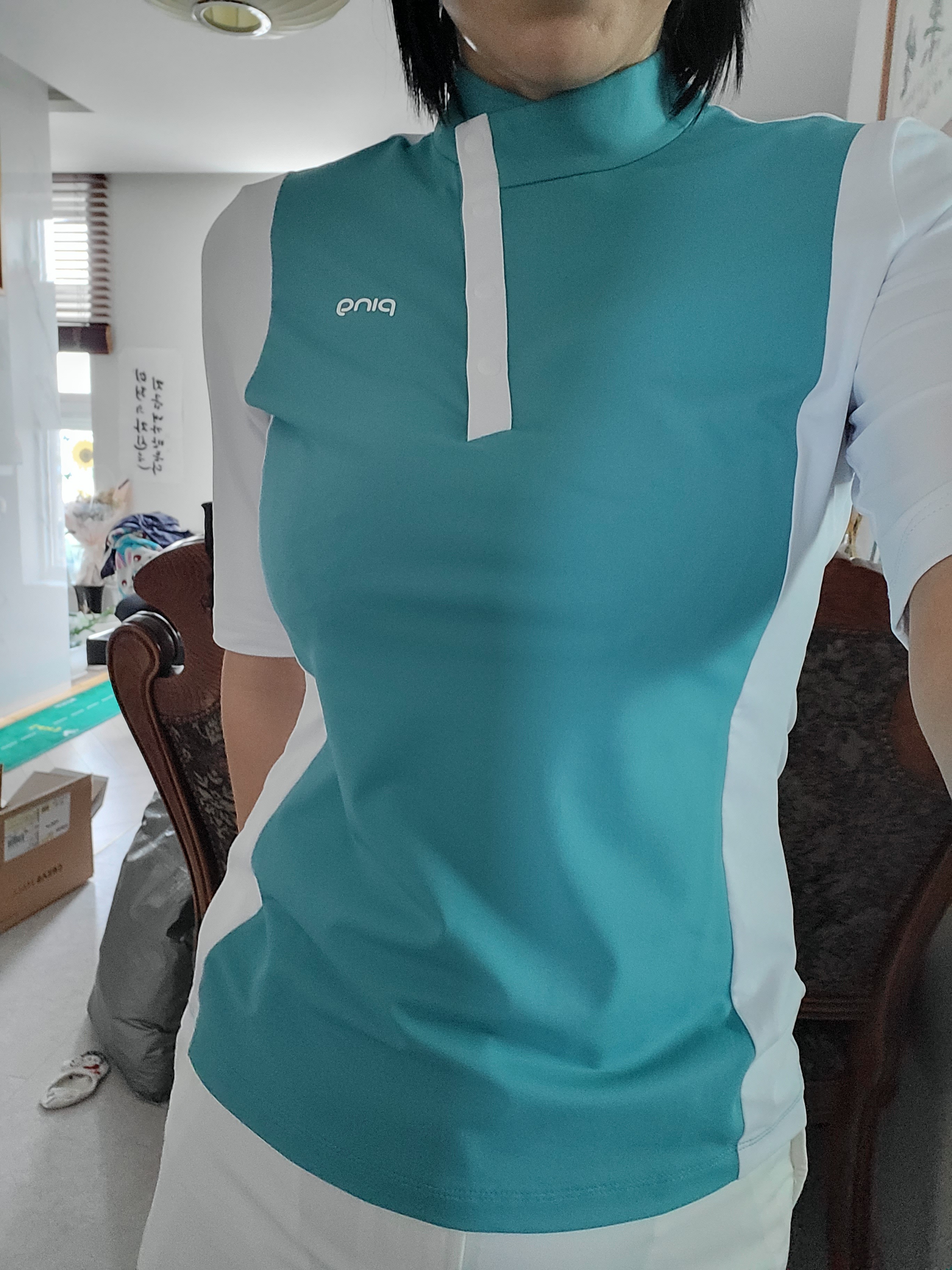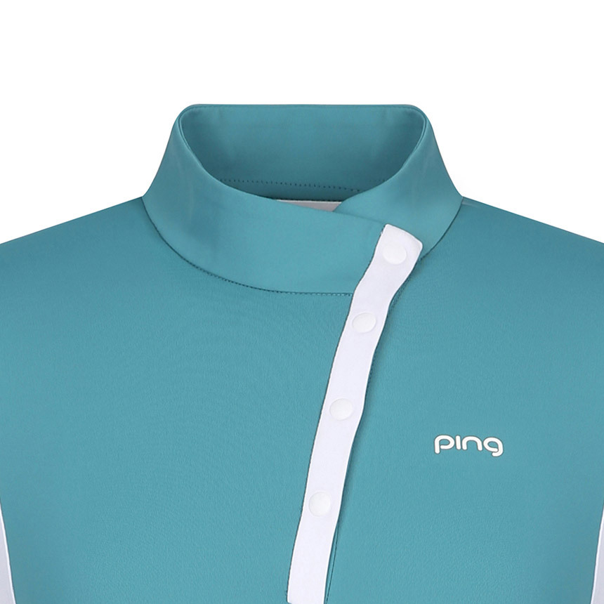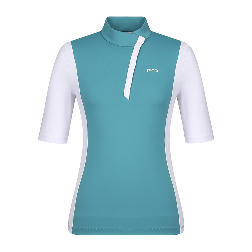 女【現貨】5折起 韓版PING 正品同步/春夏 配色斜線按鈕彈性短袖T恤 /網美推薦高爾夫球衣