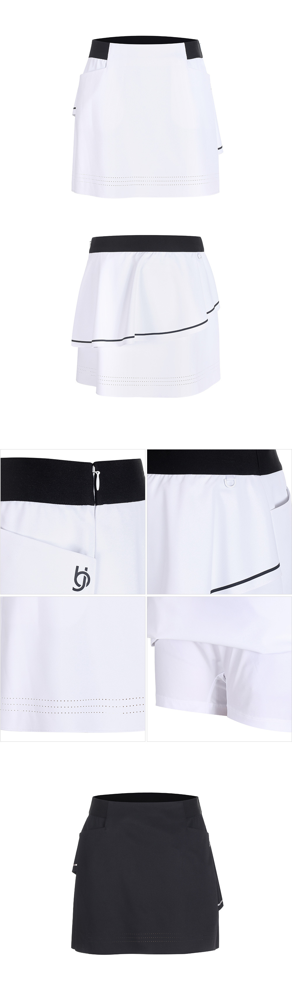 1, A字裙褲下端有打孔點網眼設計具有特色,後方臀圍設計不規則波浪形狀,打造出女性化的耀眼漢語中不凡,是今年高球時尚單品必收款式。