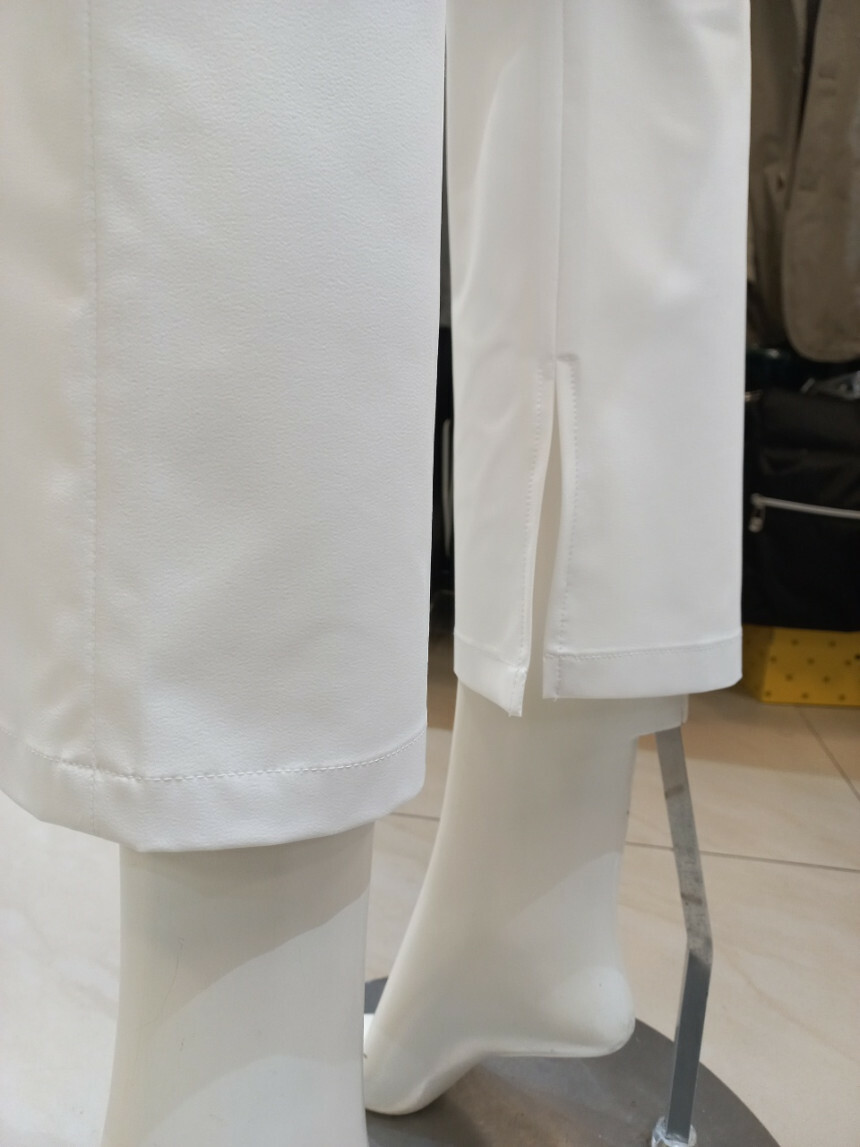 1.合身彈性腰圍靴型褲修飾大腿是顯瘦款,優雅又兼具時尚,下襬開衩蓋過腳踝加長小腿長度,有視覺增高的效果。