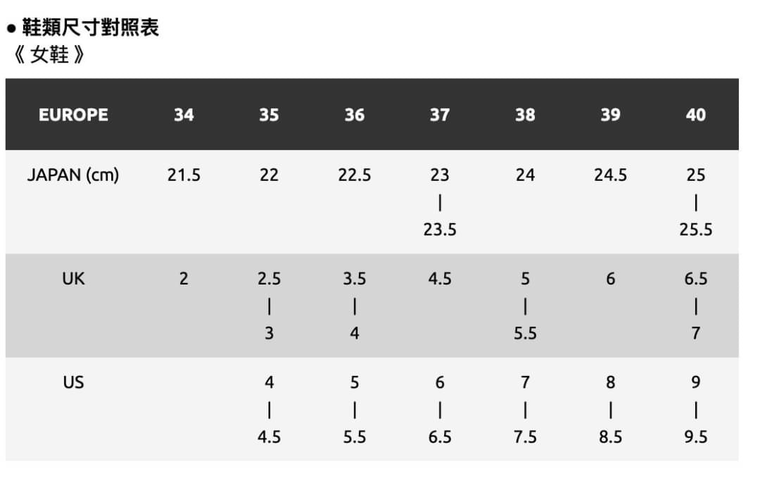 以上ECCO鞋子皆為歐規(EU)尺寸,選購時請對照自己的國際尺碼(例如腳底幾公分,可以量鞋墊或查看現有鞋子)