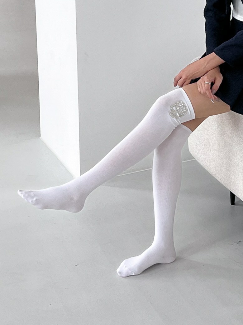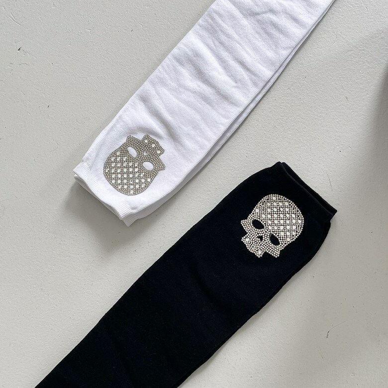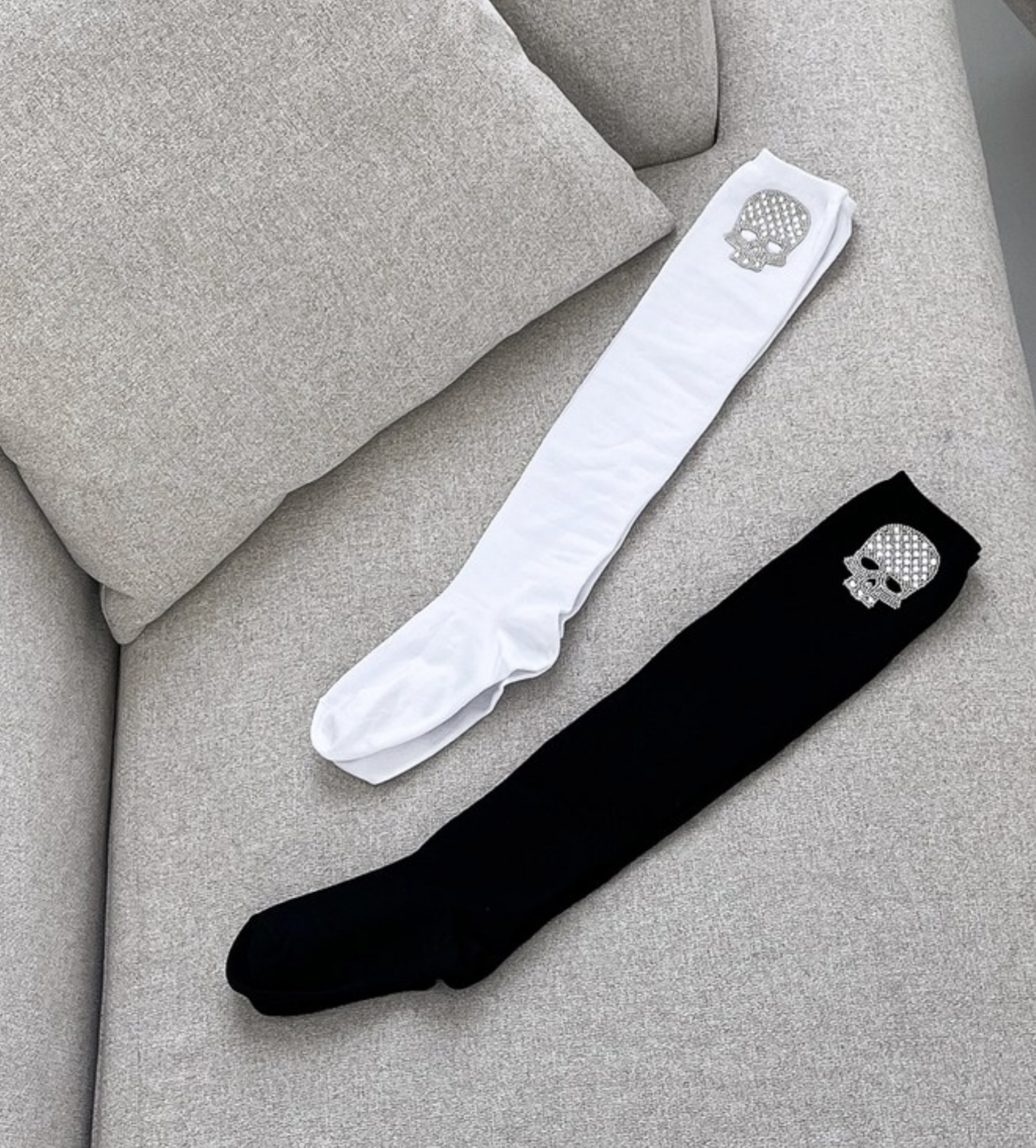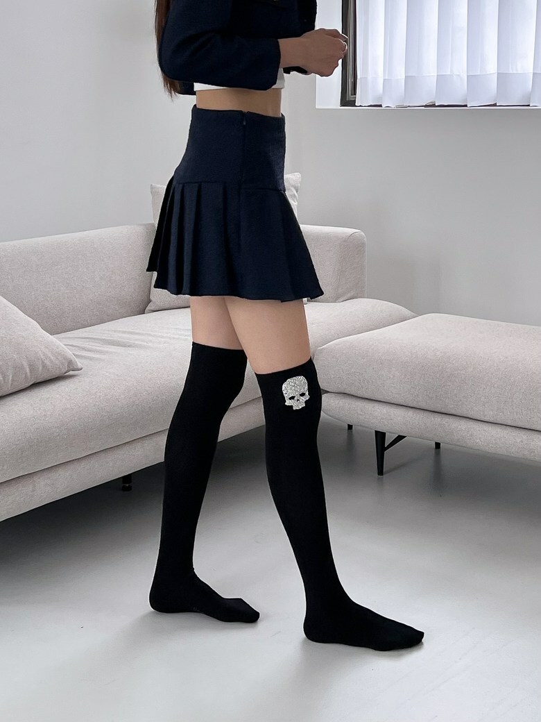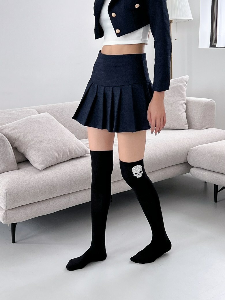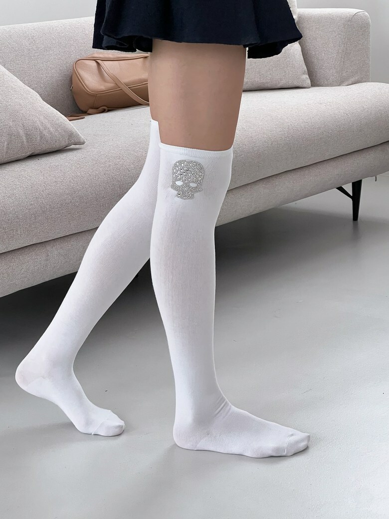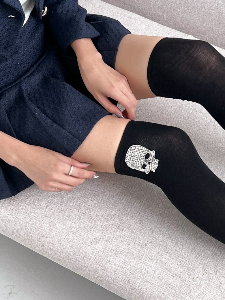 雙11🔥 時尚 Skull 骷髏圖騰印花膝蓋上長筒襪 學院風長筒襪