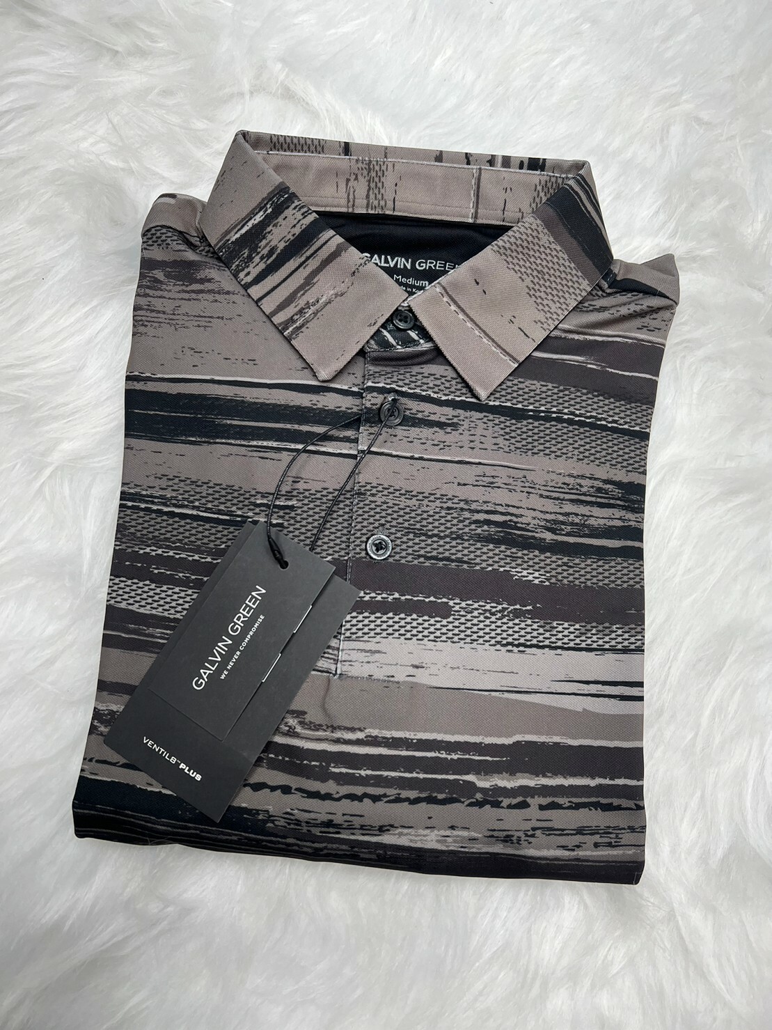 男【現貨】Galvin Green/Galvin Green Mathew Ventil8+/鯊魚皮條紋印花POLO短袖衫